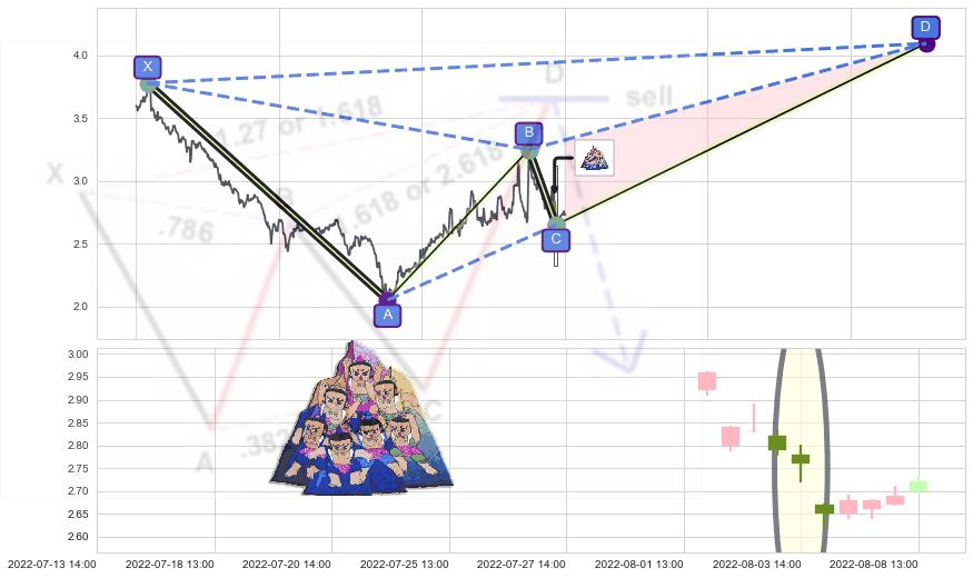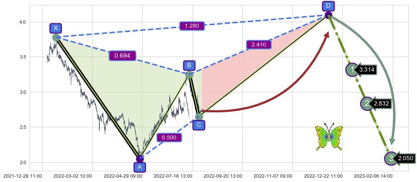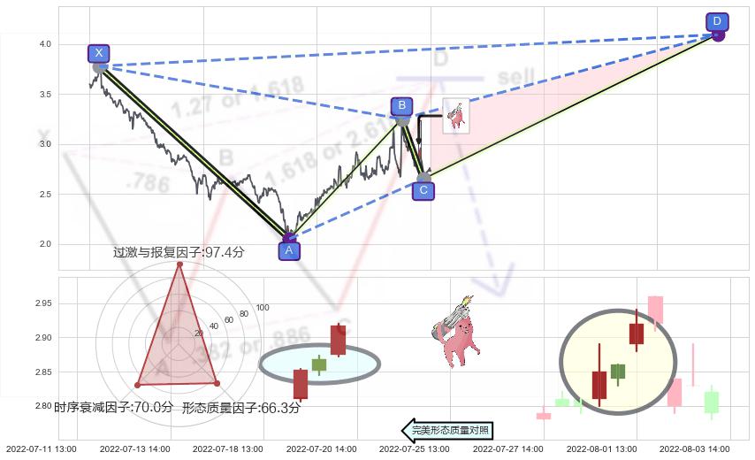 ➣ 谐波蝴蝶:猜想c点下沉接近b点后强支撑来临拉升上涨(均值回复)