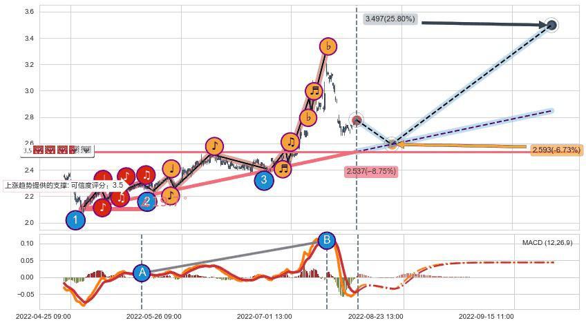 ➢ 预测:2022-08-22 10:00,【小幅回撤】稳定目前上涨趋势的前提下,预测价格:2.593
