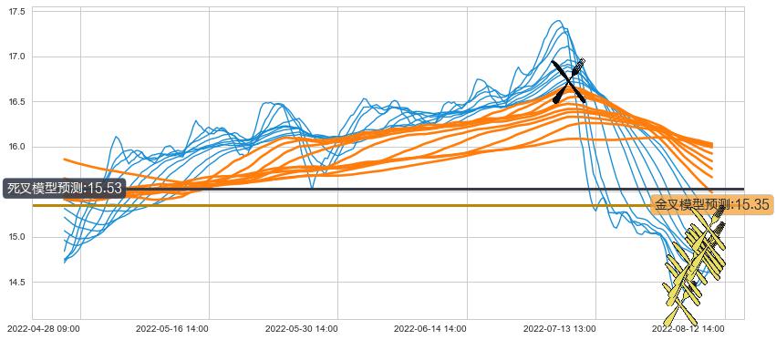 ➢ 55小时均线于(08-11 14:00: 15.09)形成【金叉】基于【金叉历史模型】预测金叉后最高波峰价格: 15.71, 金叉后最高价格15.07,尚未达到预测最高波峰价格, 预期继续上涨