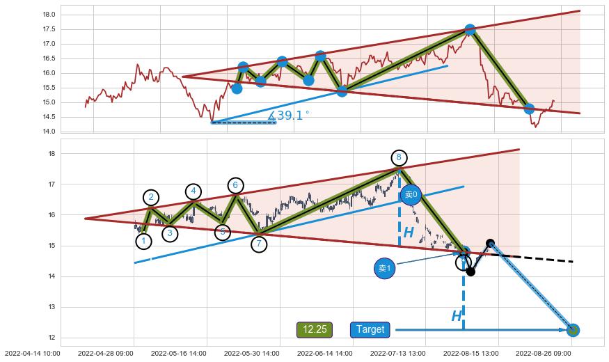 ➣ 【已确认突破】最后价格:15.04与最小【反转】第一目标价格→(08-26:10: 12.25 )相较: 下跌空间【较大】