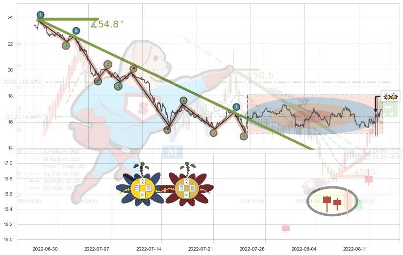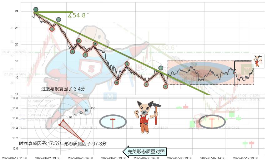 从2021-12-30 09:00至2022-05-11 10:00,共包含421个小时,阶段股价下跌-32.23%,阶段股价变动位移路程比: 1 : 7,下跌趋势角度: 54.8
