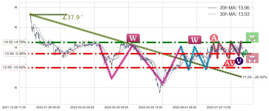 ♘ 阻力价格位14.52,可信任强度94.60%,距离最后交易2022-08-12 14:00形成的收盘价格13.86相差 +4.75%