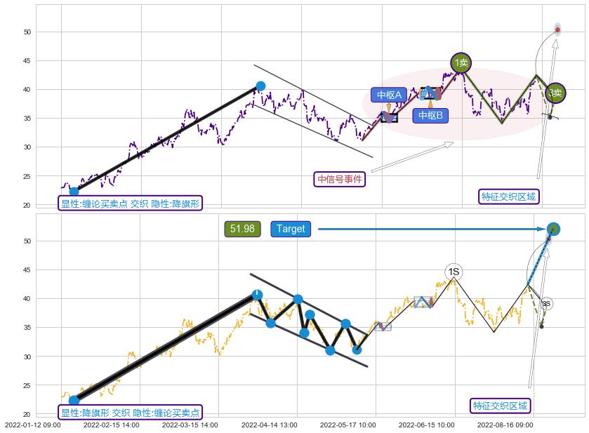 ➣ 缠论买卖点:上升缠:临近3卖-猜想击穿破位3卖后延续下跌趋势(大周期趋势均值回复后小周期持续趋势跟踪)