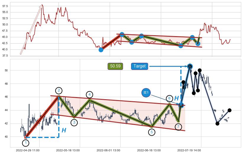 ➣ 最小中继整理涨幅→𝐇: 6.21 (𝐇旗杆的长度:旗杆起点→顶点)
