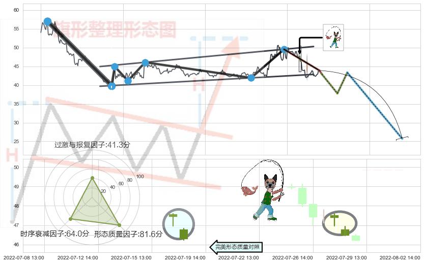 ➢ 下跌镊子线(n形磁铁) 🔜 升旗形临近支撑猜想转换阻力下跌 综合量化分数:41.74 【偏空】