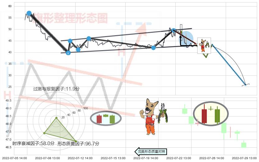 ➢ 🕰 价格走势在2022-07-27 14:00:00至2022-07-28 13:00:00期间形成吊颈线(上吊线),残存影响值:-5.07