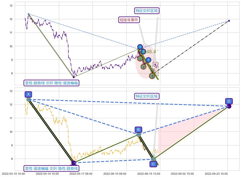➢ 趋势线属【短级别信号事件】谐波蝙蝠属【长级别信号事件】长短周期组合信号事件, 短长事件长度比11.69%