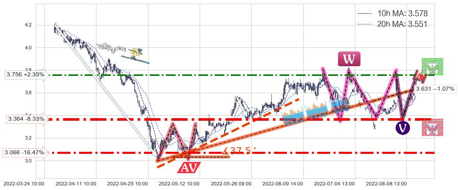 ♘ 阻力价格位3.756,可信任强度63.85%,距离最后交易2022-08-12 14:00形成的收盘价格3.670相差 +2.35%