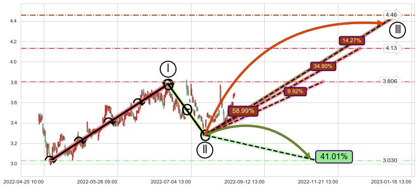➢ 循环浪继续向上【最低】位置(11-07:13, 3.806),匹配聚类样本比例16.82%, 可能性概率9.92%