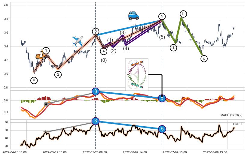 ➢ 第五驱动浪【动能】:🚙 54.75%, 是3个上涨浪中【中等】动能