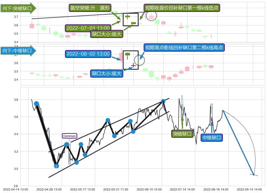 ➢ 2022-07-01 13:00形成:向下跳空【突破】缺口