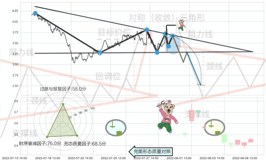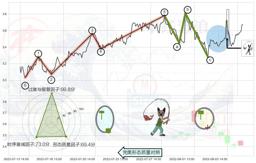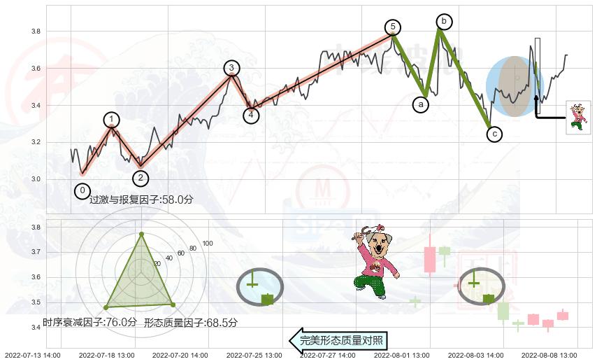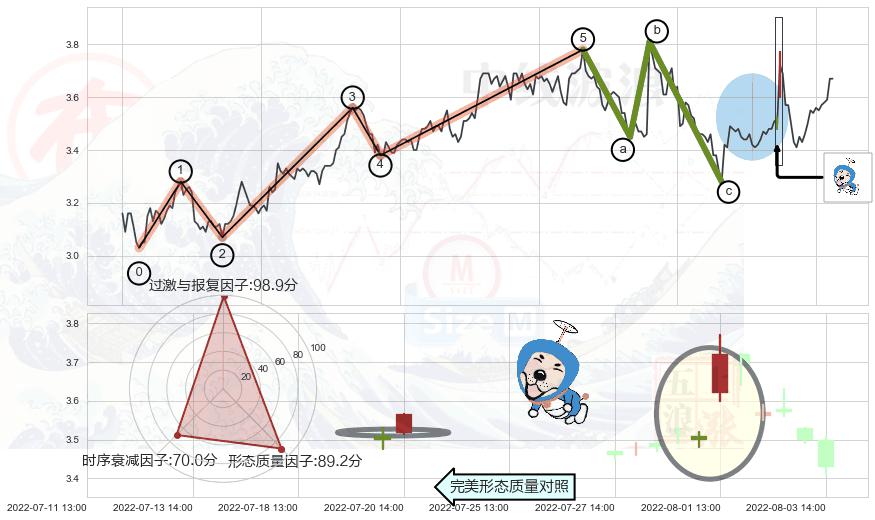 ➢ 🕰 价格走势在2022-07-29 14:00:00至2022-08-01 13:00:00期间形成上涨螺旋桨形态,残存影响值:7.36