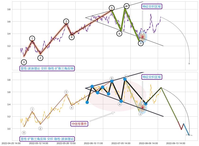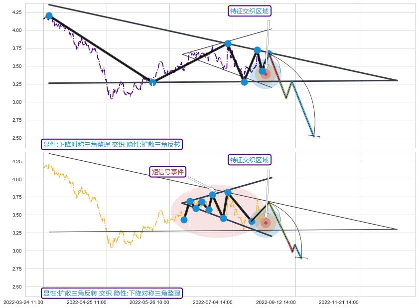 ➢ 扩散三角反转属【短级别信号事件】下降对称三角整理属【长级别信号事件】长短周期组合信号事件, 短长事件长度比30.86%