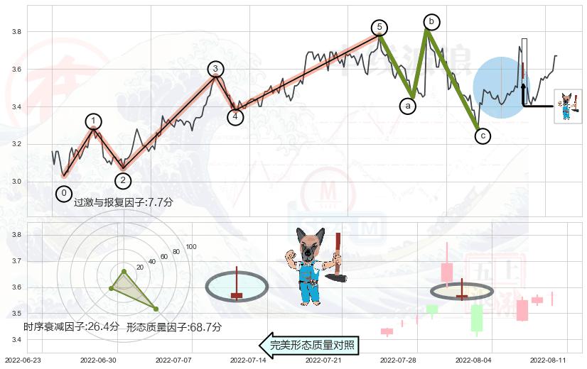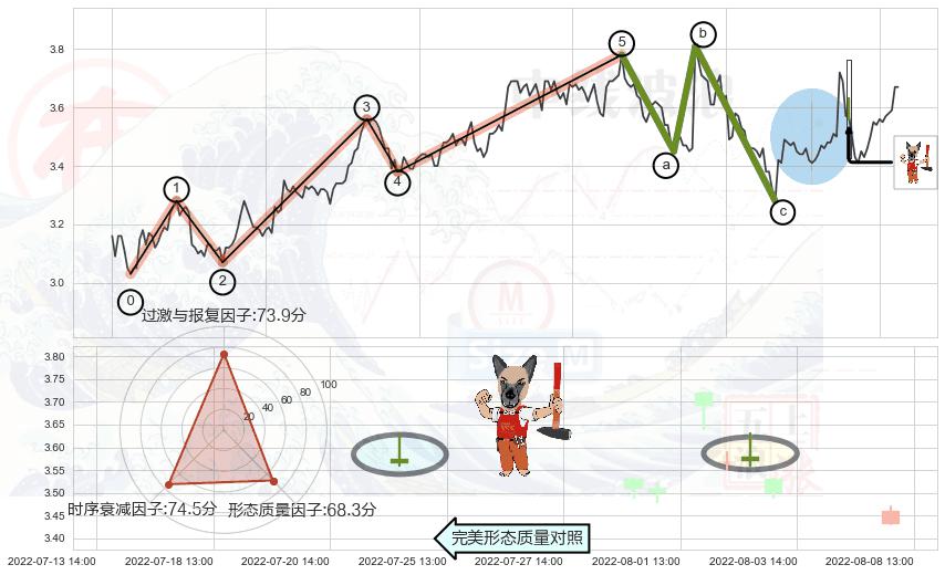 ♘ 支撑价格位3.066,可信任强度72.31%,距离最后交易2022-08-12 14:00形成的收盘价格3.670相差 -16.47%