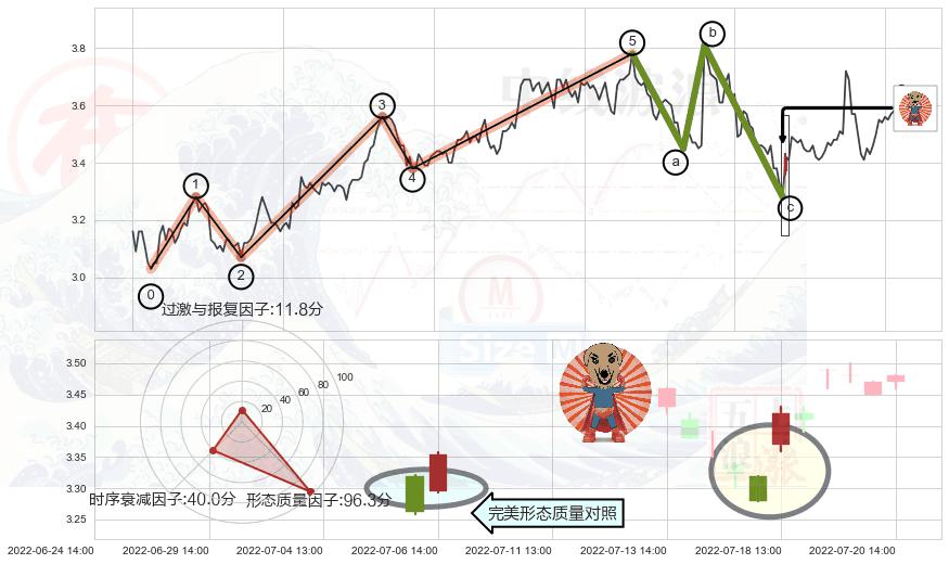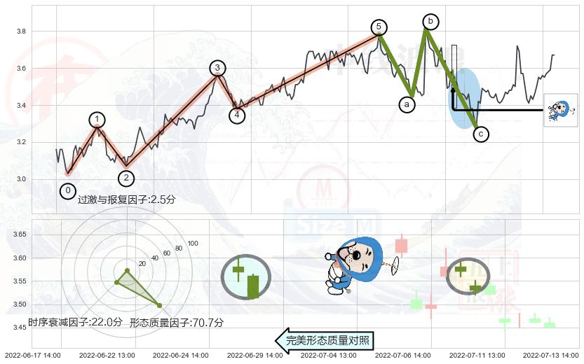➢ 🕰 价格走势在2022-07-11 13:00:00至2022-07-11 13:00:00期间形成单针探底(定海神针),残存影响值:2.38
