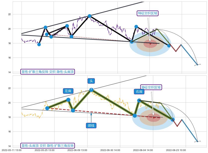➣ 下跌螺旋桨 + 扩散三角反转临近支撑猜想转换阻力下跌信号叠加后【目标达成率】中等,【看空】信号叠加【存续影响中等】