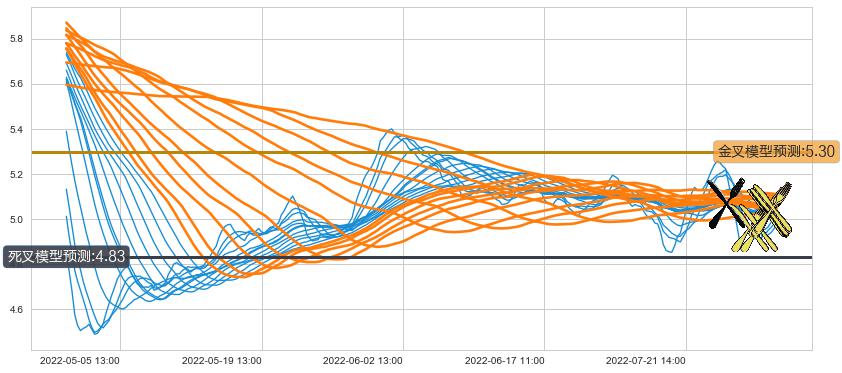 ➣ 34小时均线于(08-01 14:00: 5.06)形成【死叉】基于【死叉历史模型】预测死叉后最低波谷价格: 4.83, 死叉后最低价格4.84,尚未达到预测最低波谷价格, 预期继续下跌