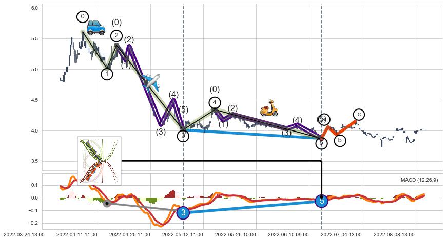 ➢ 波浪理论:猜想达到c点后小反弹终止反转下跌 → 下跌 → 【拐点】临近 → 阶段均值回复结束后继续大周期趋势跟踪