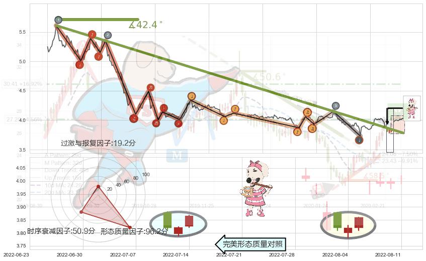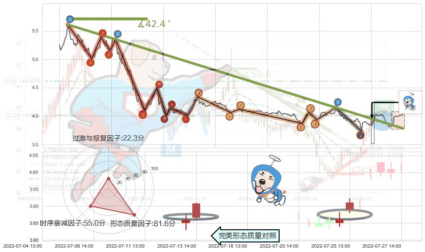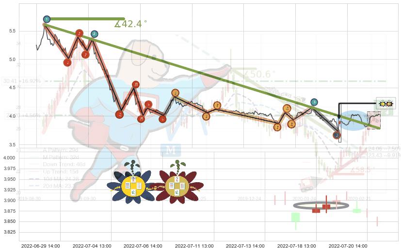 ➣ 2022-04-06 13:00-2022-07-26 13:00下跌趋势存在反转上涨[机会],其原下跌趋势的阻力位(3.782)已被突破[强支撑信号],原下跌趋势角度: 42.4˚