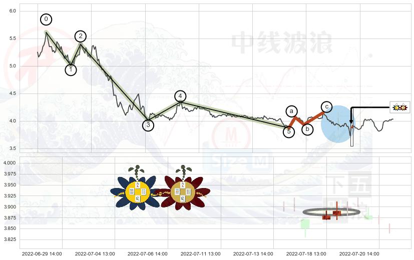 ➢ 🕰 价格走势在2022-07-22 14:00:00至2022-07-25 13:00:00期间形成上涨螺旋桨形态,残存影响值:3.90