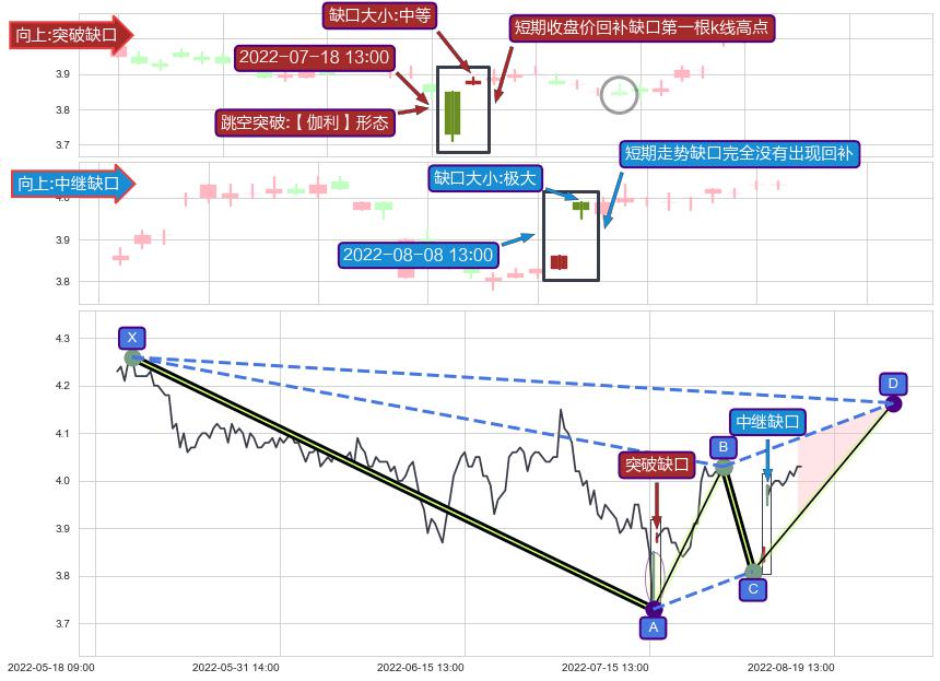 ➢ 2022-08-08 13:00形成:向上跳空【中继】缺口