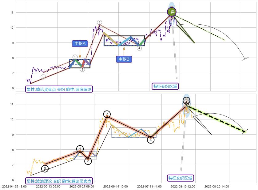 ➢ 智能识别已发生事件:缠论第一类卖点【卖❶】→(08-08:13: 10.89 )