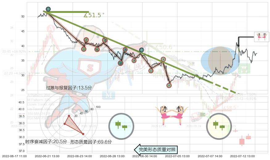 从2022-04-27 09:00至2022-08-02 13:00,共包含234个小时,阶段股价上涨24.53%,阶段股价变动位移路程比: 1 : 7,上涨趋势角度: 30.1