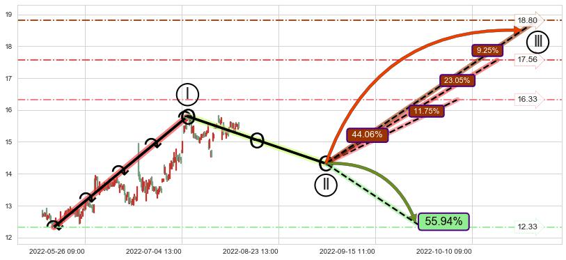 ➢ 循环浪继续向上【最低】位置(10-05:12, 16.33),匹配聚类样本比例26.67%, 可能性概率11.75%