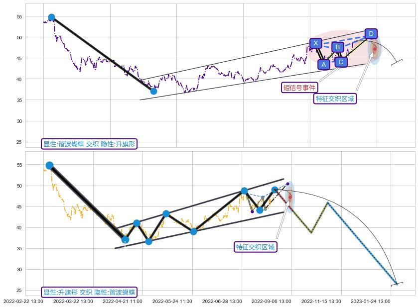 ➢ 谐波蝴蝶属【短级别信号事件】升旗形属【长级别信号事件】长短周期组合信号事件, 短长事件长度比12.94%