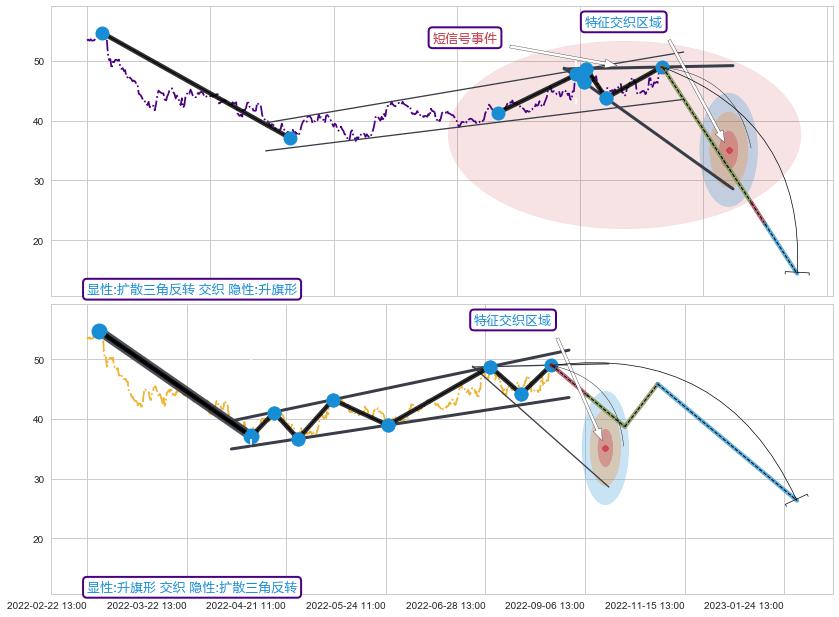 ➣ 扩散三角反转:猜想临近关键支撑位突破点 → 临近拐点下跌 → 风险信号 → 大趋势均值回复