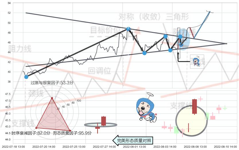 ➢ 【买1】: 激进型 买点 →(08-11:13: 46.91 )形成突破上升【对称】三角形整理【整理】形态