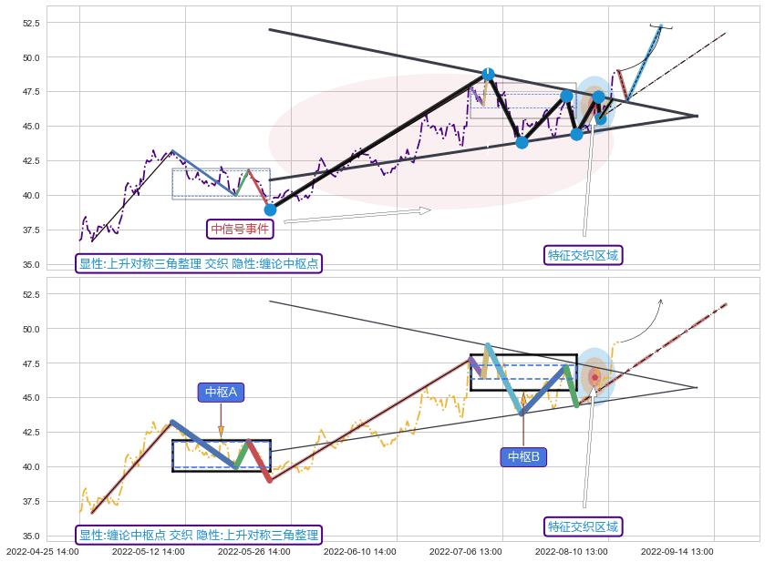 ➢ 上升对称三角整理属【中级别信号事件】缠论中枢点属【长级别信号事件】中长周期组合信号事件,中长事件长度比65.20%