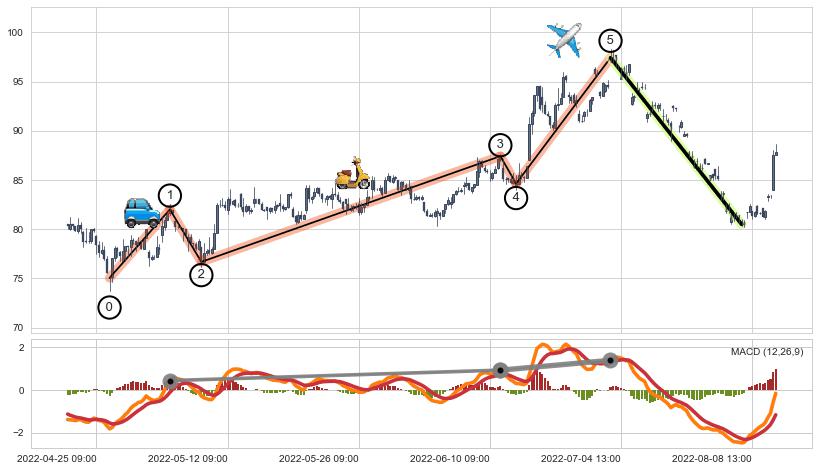 ➢ 最后的上涨趋势2022-04-26 09:00至2022-07-15 13:00:存在破位迹象,后续小调整或者反转下跌