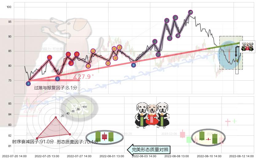 ♘ 阻力价格位90.14,可信任强度50.80%,距离最后交易2022-08-12 14:00形成的收盘价格87.87相差 +2.58%