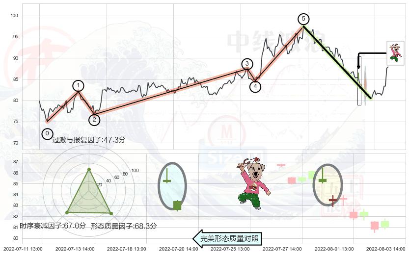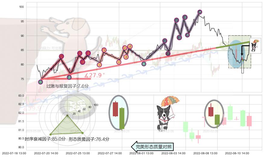 ➢ 🕰 价格走势在2022-08-04 14:00:00至2022-08-05 13:00:00期间形成上涨螺旋桨形态,残存影响值:5.27