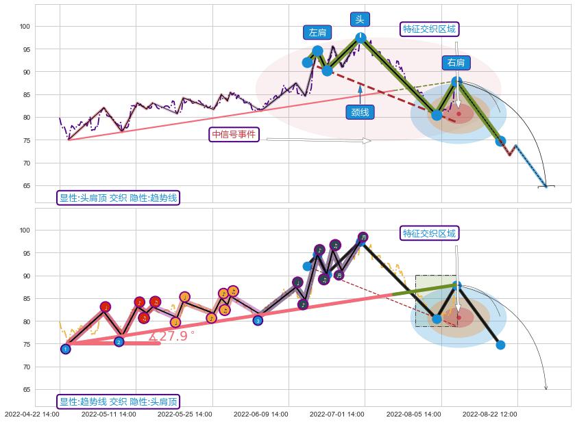 ➢ 头肩顶属【中级别信号事件】趋势线属【长级别信号事件】中长周期组合信号事件,中长事件长度比57.64%