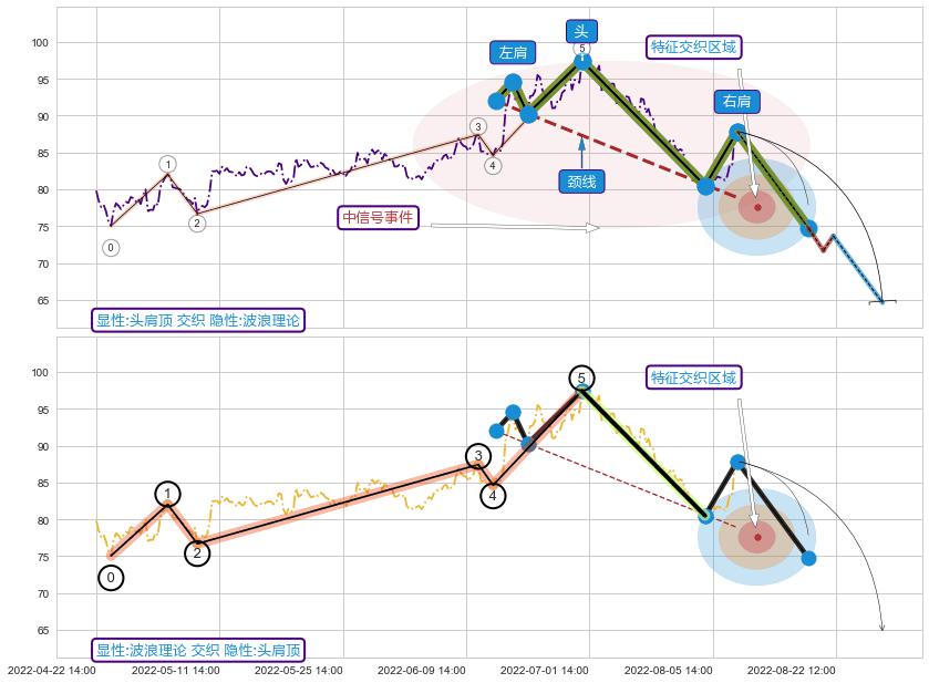 ➢ 头肩顶属【中级别信号事件】波浪理论属【长级别信号事件】中长周期组合信号事件,中长事件长度比54.55%