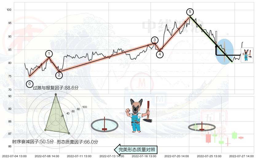 ➢ 🕰 价格走势在2022-07-28 14:00:00至2022-07-29 13:00:00期间形成射击之星形态,残存影响值:-5.03