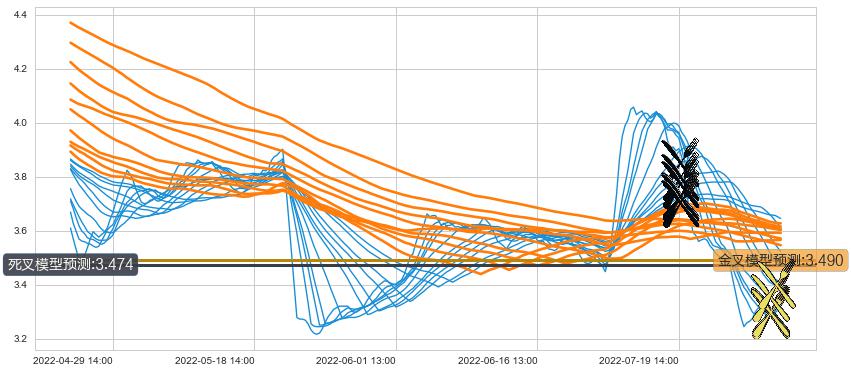 ➣ 40小时均线于(07-19 14:00: 3.795)形成【死叉】基于【死叉历史模型】预测死叉后最低波谷价格: 3.529, 死叉后最低价格3.210,已经下跌超出预测最低波谷价格, 预期反弹