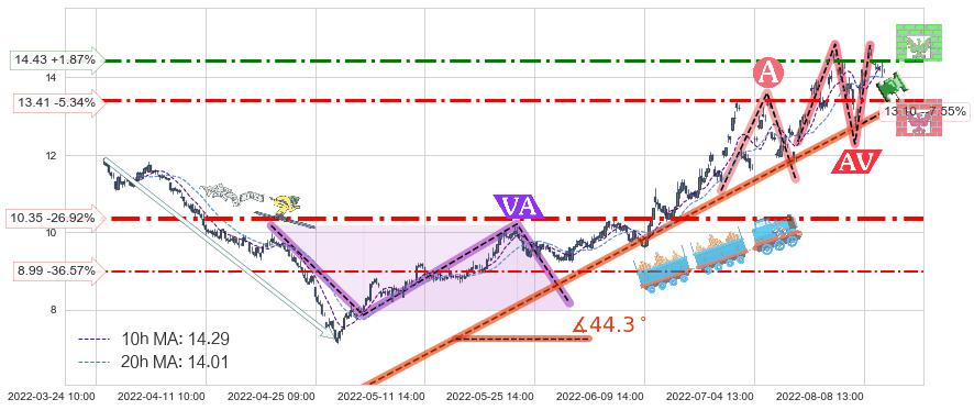 ♘ 阻力价格位14.43,可信任强度55.03%,距离最后交易2022-08-12 14:00形成的收盘价格14.17相差 +1.87%