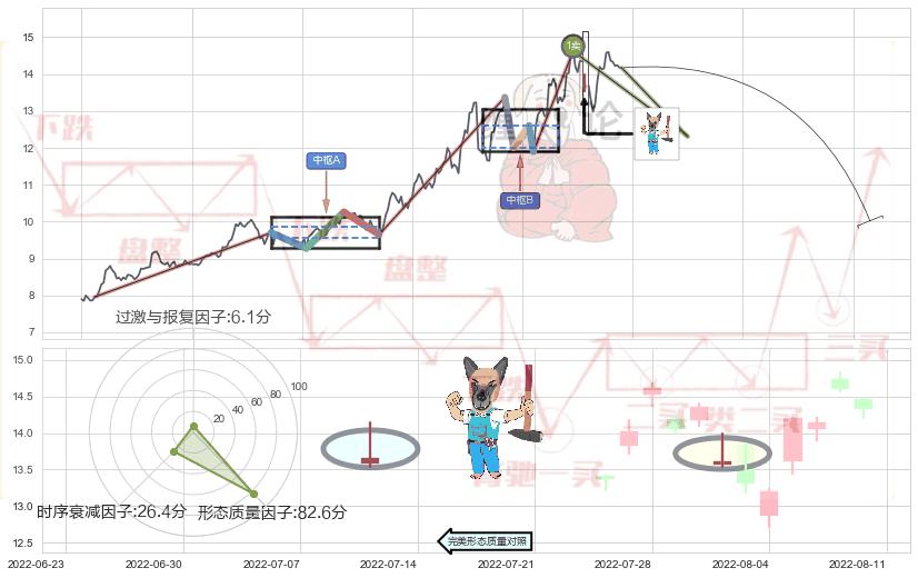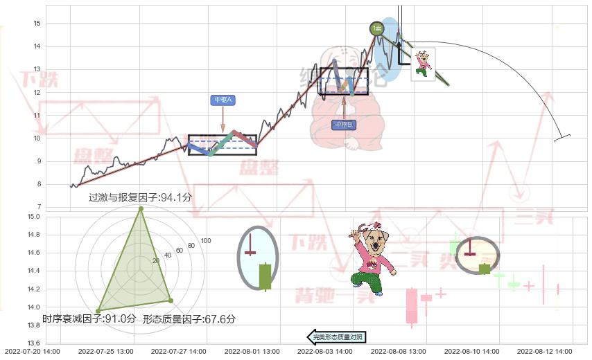 从2022-07-15 14:00至2022-08-12 14:00,共包含41个小时,阶段股价上涨18.61%,阶段股价变动位移路程比: 1 : 3