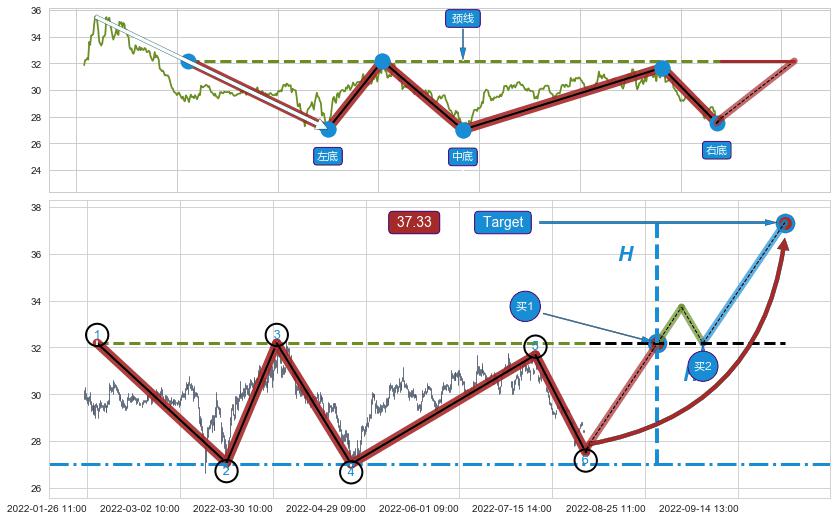 ➢ 图示②④⑥三个波谷均在 32.18 附近成功获得【支撑】→反弹上涨