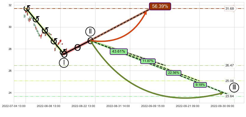 ➢ 循环浪继续向下【最低】位置(09-30:09, 23.64),匹配聚类样本比例21.05%, 可能性概率9.18%