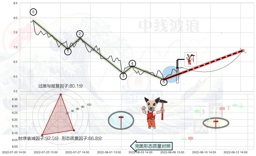 从2022-08-04 13:00至2022-08-12 14:00,共包含14个小时,阶段股价上涨6.65%,阶段股价变动位移路程比: 1 : 1.4