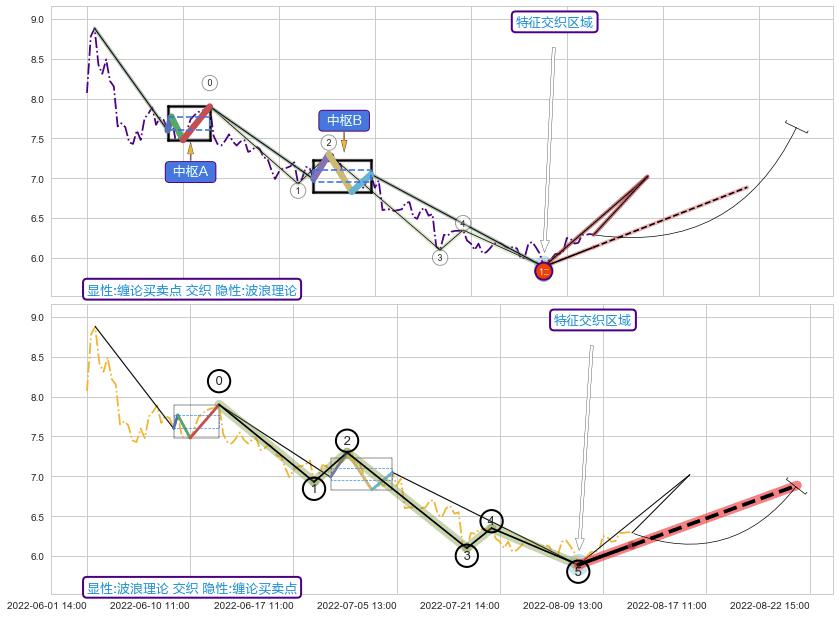 ➣ 缠论买卖点:下降缠中枢AB形成后猜想拐点1买已到达,猜想后续持续拉升(均值回复)