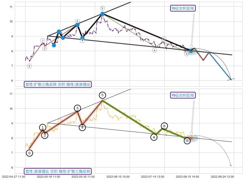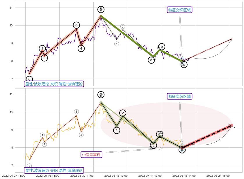 ➣ 波浪理论:猜想击穿破位c点后继续下跌 → 下跌 → 风险信号 → 小趋势跟踪