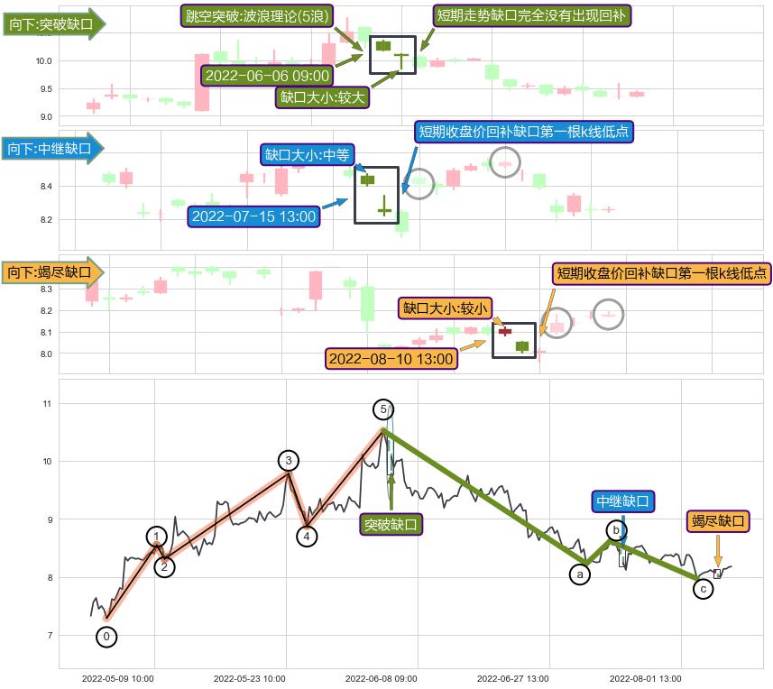 ➢ 2022-08-10 13:00形成:向下跳空【竭尽】缺口