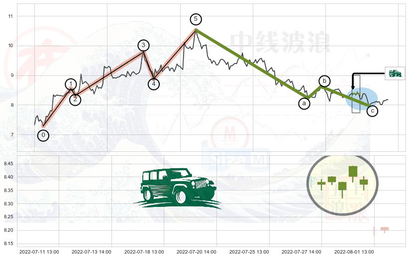 ➣ 波浪理论:猜想达到c点后小回调终止反转上涨 → 上涨 → 【拐点】临近 → 阶段均值回复结束后继续大周期趋势跟踪