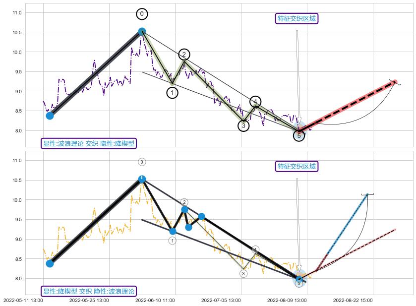 从2022-08-04 13:00至2022-08-12 14:00,共包含14个小时,阶段股价上涨2.63%,阶段股价变动位移路程比: 1 : 2