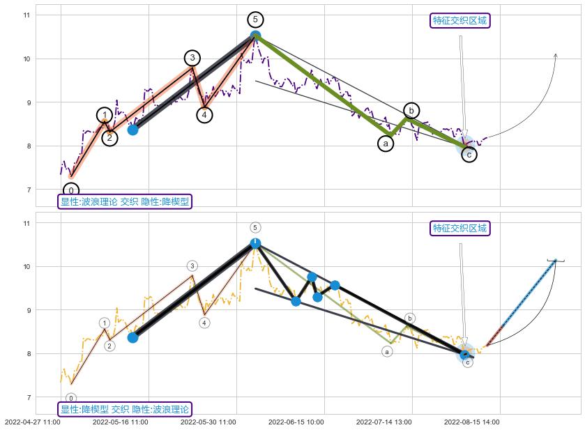 ➢ 波浪理论与降楔型信号事件周期长度级别相同,同周期信号事件